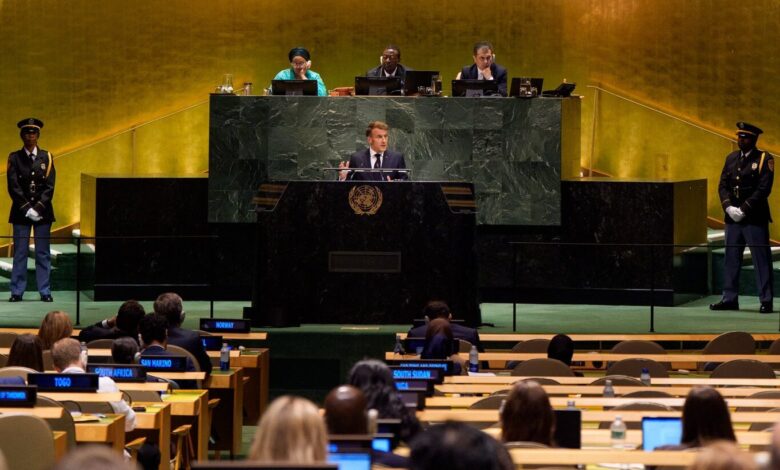 Macron, BM kapsamında düzenlenen Filistin konulu konferansta alınan kararlara değinerek, “Gazze’deki savaşı sona erdirmek, İsrail ve Filistin olmak üzere iki devletli çözümü korumak, tüm rehinelerin serbest bırakılmasını sağlamak ve çok sayıda hayatı kurtarmak için güvenilir bir barış planı benimsedik” dedi.
